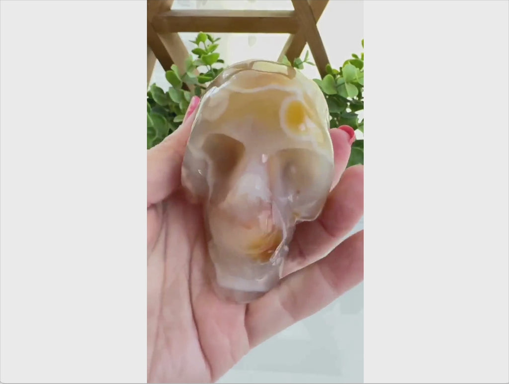 Carnelian Flower Agate Crystal Skull for Grounded Action, approx 3"